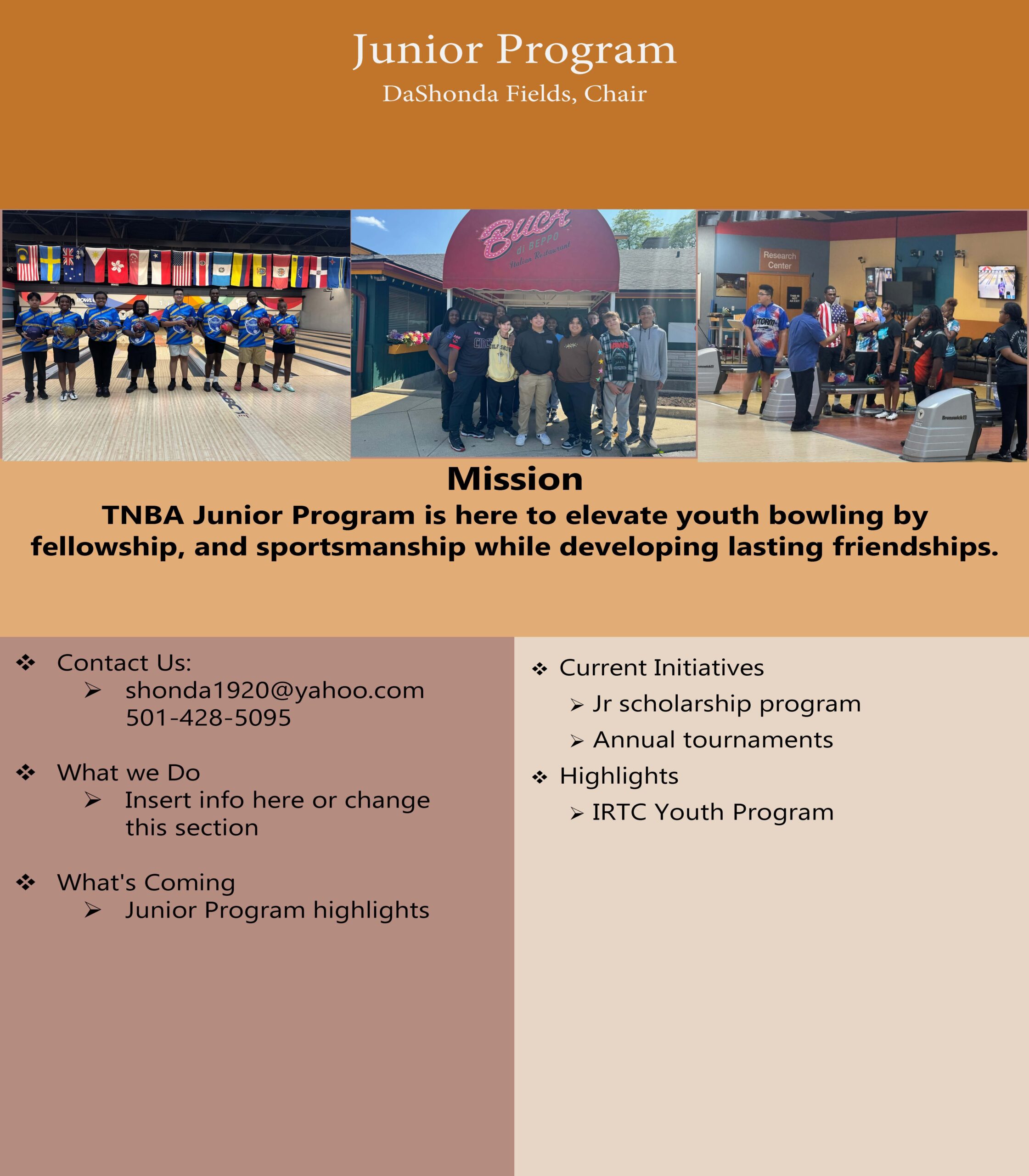 Programs and Committees exist to support TNBA’s ongoing operations, facilitate communication across the organization, and promote Fellowship, Friendship and Sportsmanship.